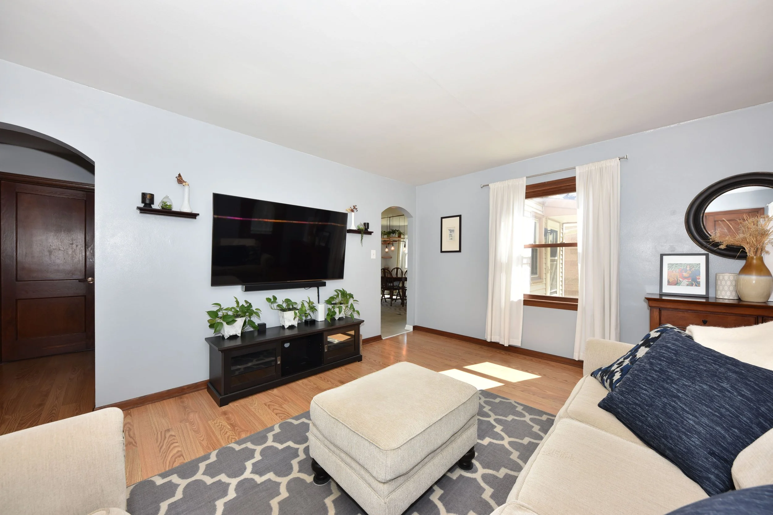 Beautiful, move in ready and well maintained 4 bedroom Cape Cod. Main level features living room with wood floors, 2 generous sized bedrooms, remodeled full bath and an updated kitchen with large eat-in area. Patio doors from dinette open to nicely landscaped fenced in backyard with deck that is perfect for entertaining. Upper level has primary bedroom, 4th bedroom and powder room. Don’t miss the finished rec room and 2 car garage. Walking distance to nearby restaurants and parks. Minutes to downtown, Bayview, the lake, and airport.